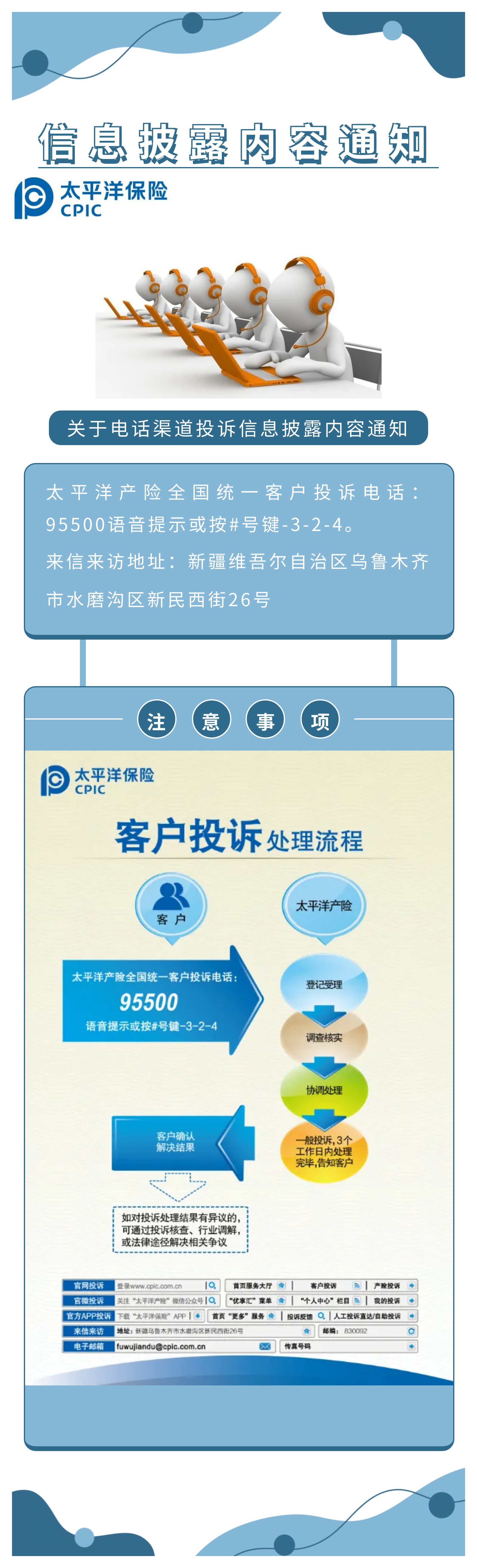 太平洋產(chǎn)險全國統(tǒng)一客戶投訴電話:95500語音提示或按#號鍵-3-2-4