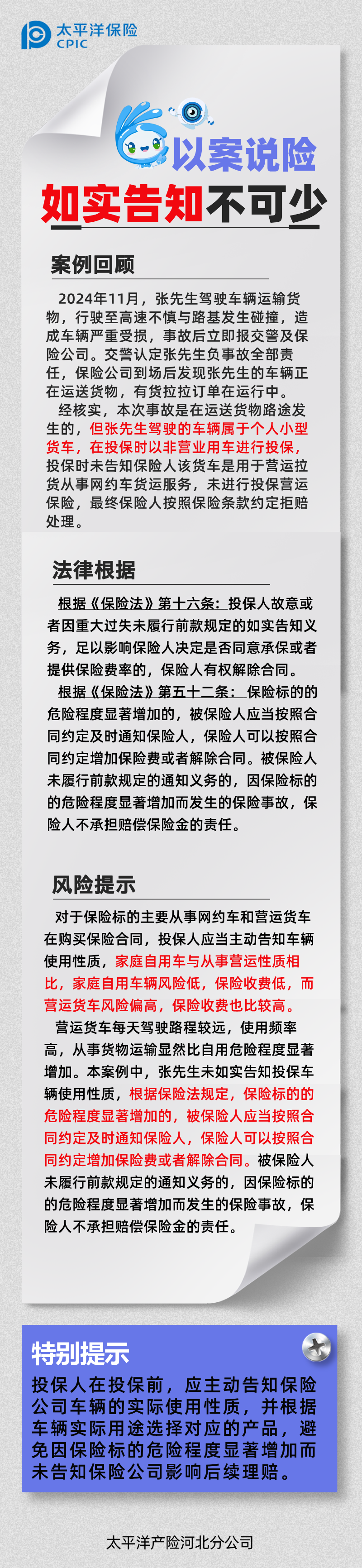 以案說(shuō)險(xiǎn) | 車(chē)用性質(zhì)勿隱瞞,如實(shí)告知不可少