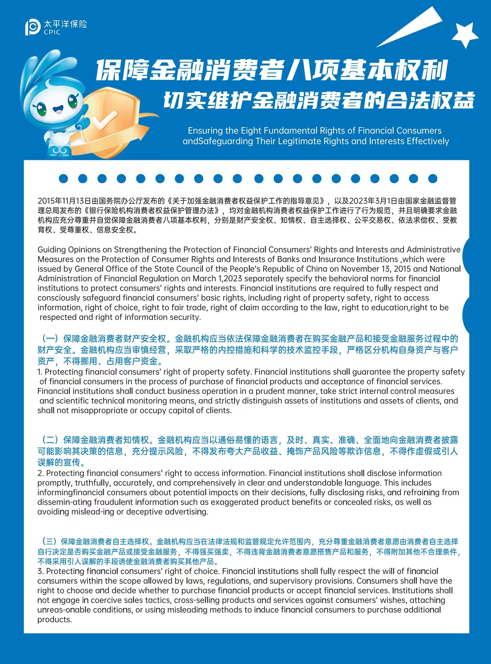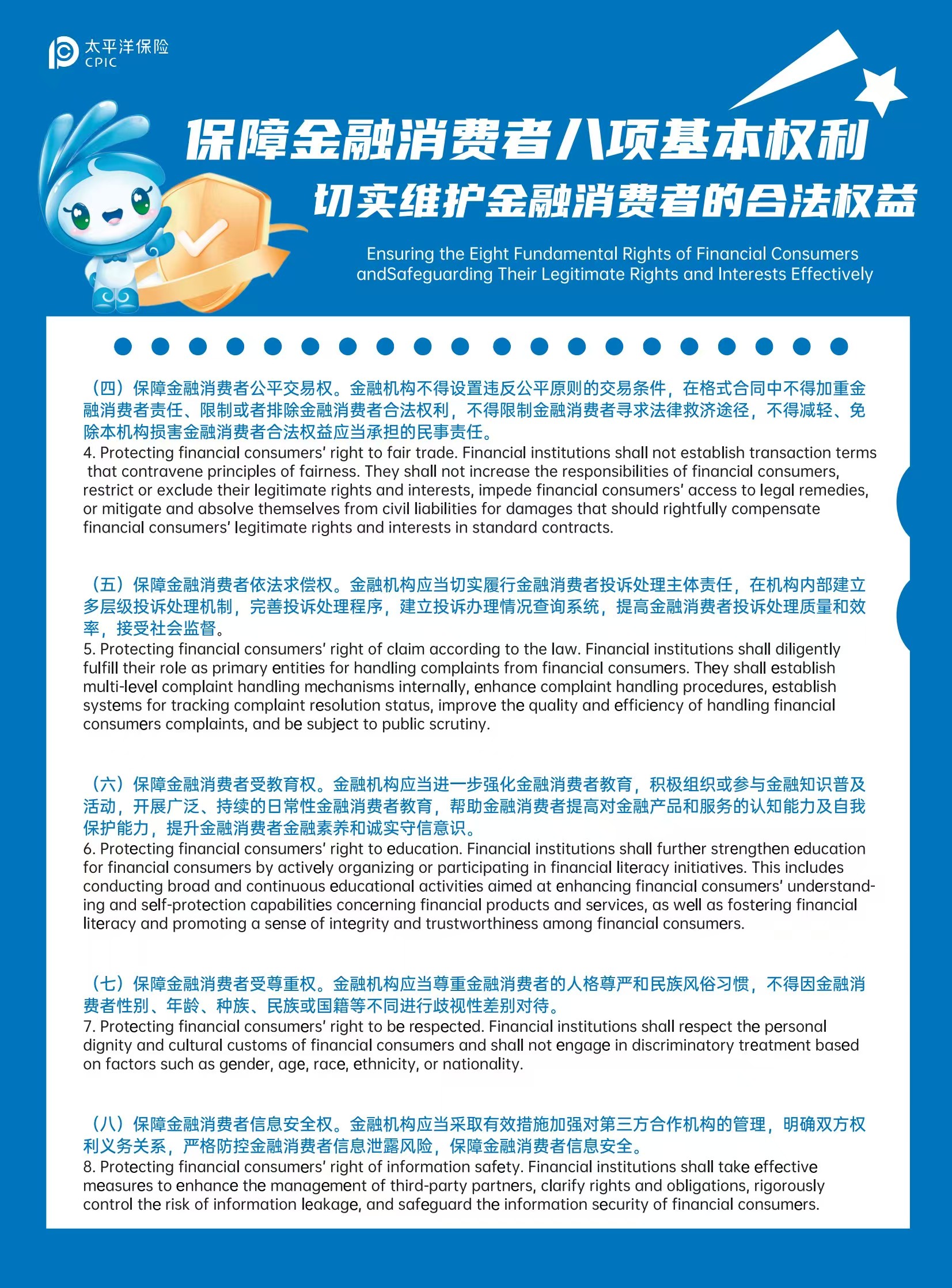 【保險(xiǎn)知識(shí)】保障金融消費(fèi)者八項(xiàng)基本權(quán)利(中英文版本)
