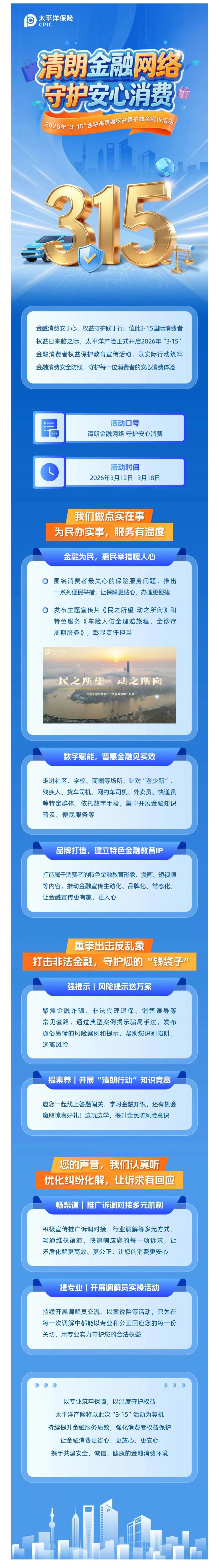 【保險知識】太平洋產(chǎn)險啟動2026年“3·15”金融消費者權(quán)益保護教育宣傳活動
